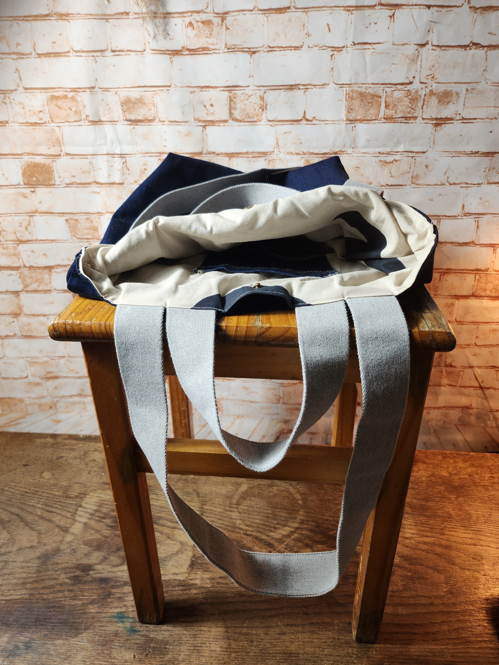 Gefertigt aus einer upgecycelten Jeans (Denim) überzeugt er durch Strapazierfähigkeit und Stil.